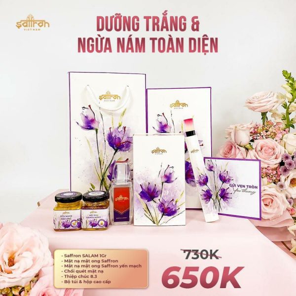 Cấp ẩm da: crocin trong saffron kết hợp cùng rất nhiều vitamin A, vitamin nhóm B, vitamin C và khoáng chất, đem đến hiệu quả giúp làn da căng mướt mịn ngay lần đầu sử dụng.