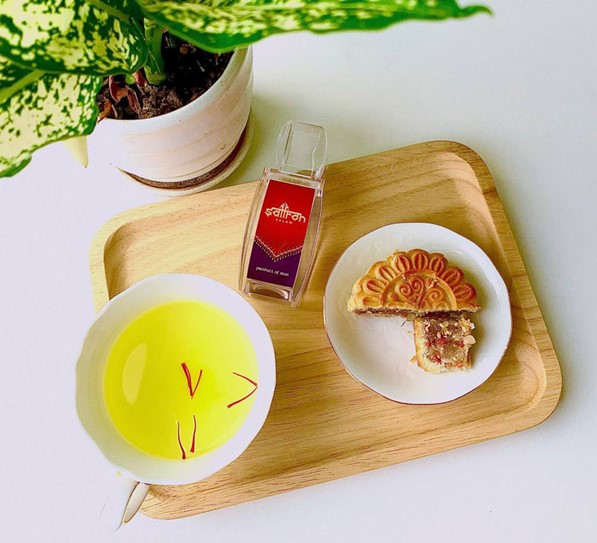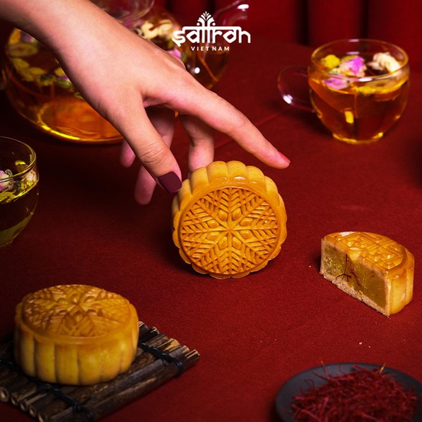 Vị thơm mềm của vỏ bánh kết hợp cùng nhân bánh mới lạ độc đáo, ăn miếng bánh, thêm tách trà Saffron để hãm đi hậu vị ngọt của bánh trong cổ họng. Sẽ khiến cho đêm trăng thêm tròn đầy viên mãn, tuyệt hảo.