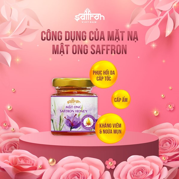 Kháng viêm ngừa mụn: Cả saffron và mật ong đều có tính kháng viêm mạnh, giúp các nốt mụn nhanh xẹp, nhanh lành hơn, hạn chế tổn thương mụn trên da.